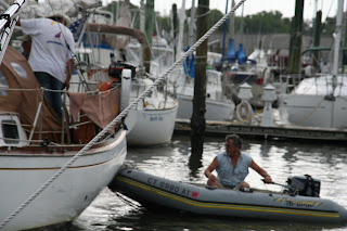 One of this months bright spots was when friends aboard Gypsy returned from the Bahamas. They attempted to join us and dock at our marina. Due to unusually low tides they kept running aground and were unable to make it dockside. Bob used our dinghy to spin her around and off the sandbar. If you recall he had a little experience doing this on our way down!